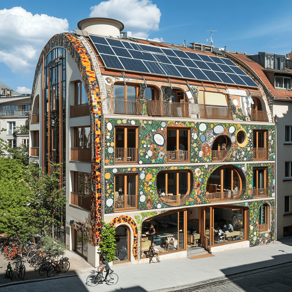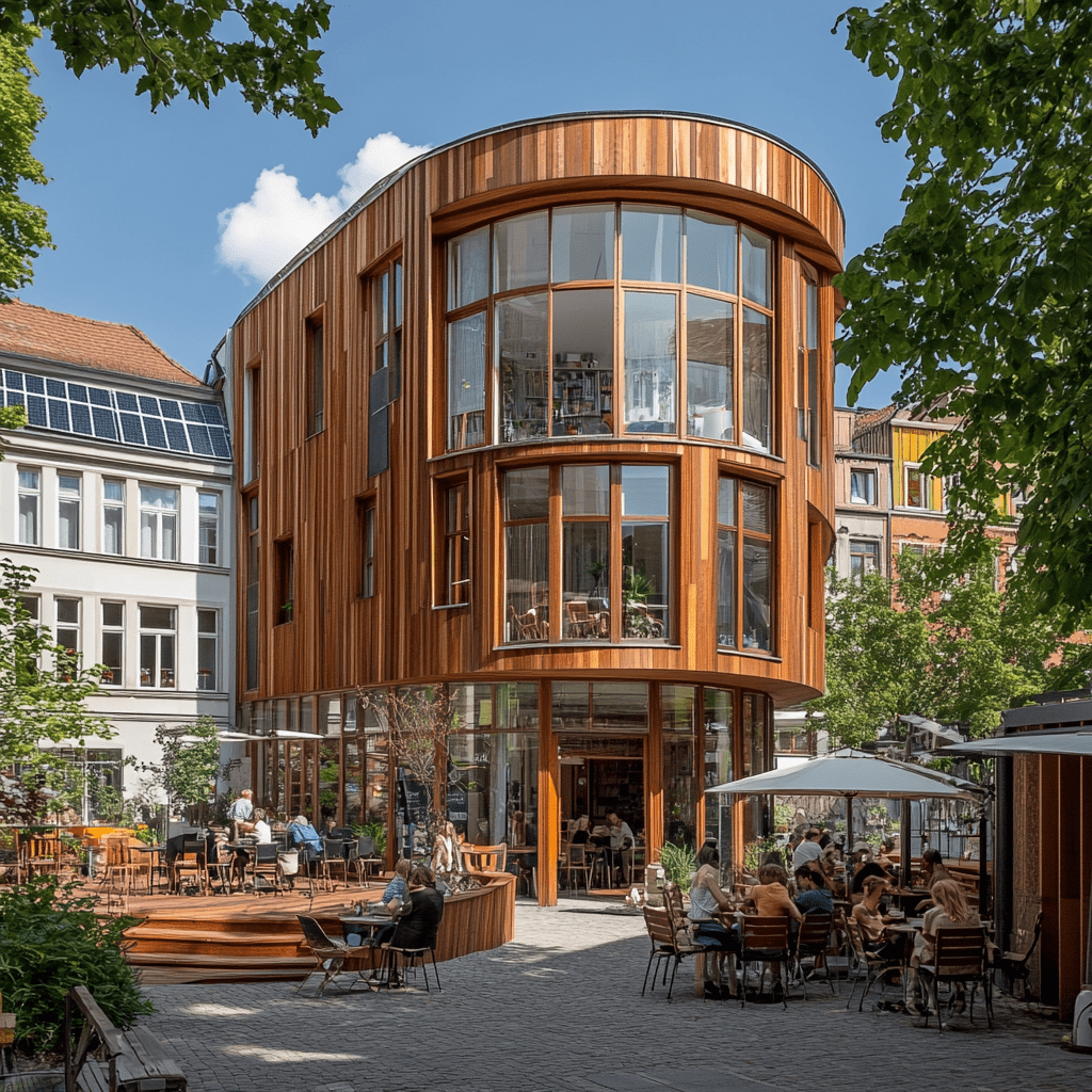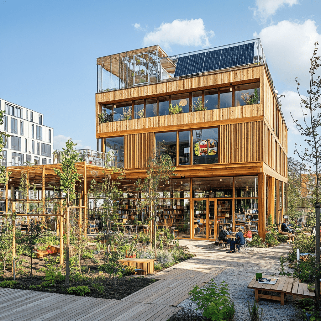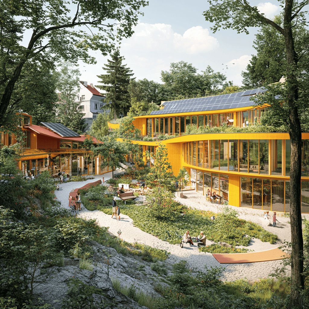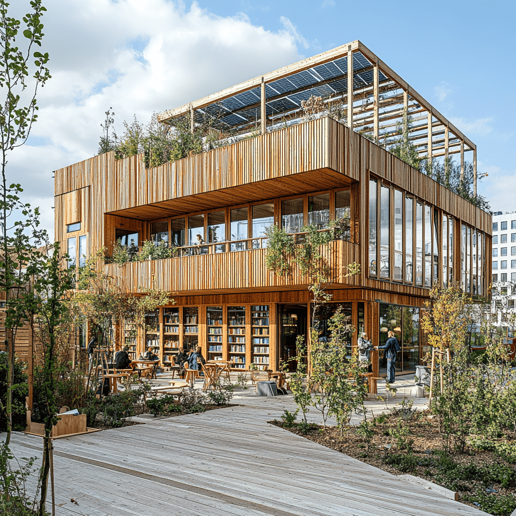 Wie könnten also diese Gemeinschaftszentren der Zukunft aussehen, in denen wir zusammen lernen, arbeiten und spielen? Ich habe Midjourney zu Rate gezogen und einige Bilder auf Grundlage meiner Ideen entworfen. Wichtige Kriterien für mich persönlich waren: